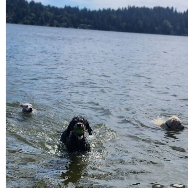 We currently offer Full Day Camp with pickups in West Seattle and Mercer Island. You pick the day or days that coincide with your pickup zone, and we pick up your pup (or pups!) and head out to a pre-planned destination tailored to the needs of your dog. Our emphasis being proactive exposure to new dogs and new places, our goal being a happy, contented and tired pooch when dropped back off at home. Our objective with the 1 1/2 hour play structure is to meet and exceed the recommended daily exercise for dogs of 30 minutes to 2 hours. Rides are always complimentary.
